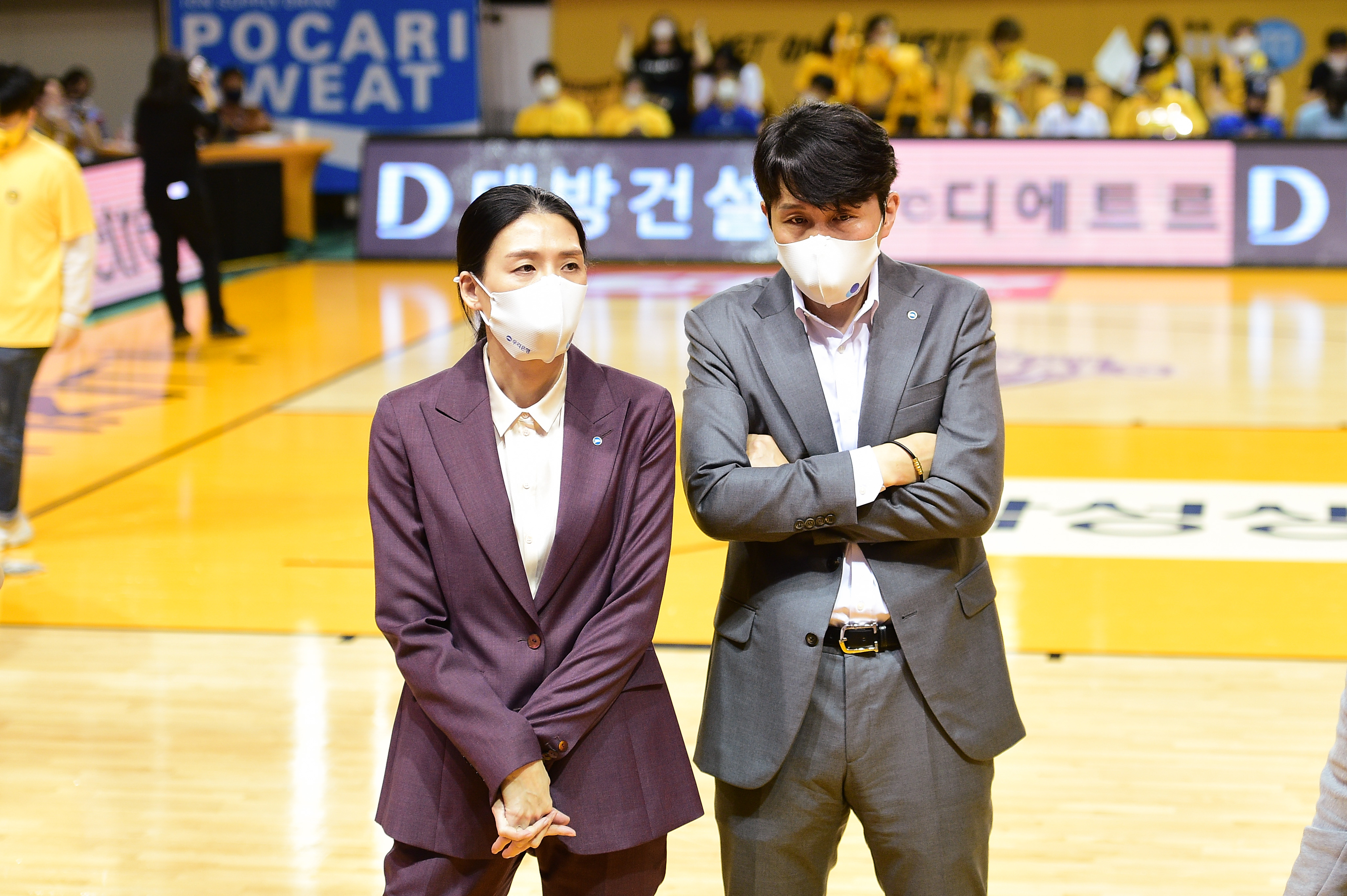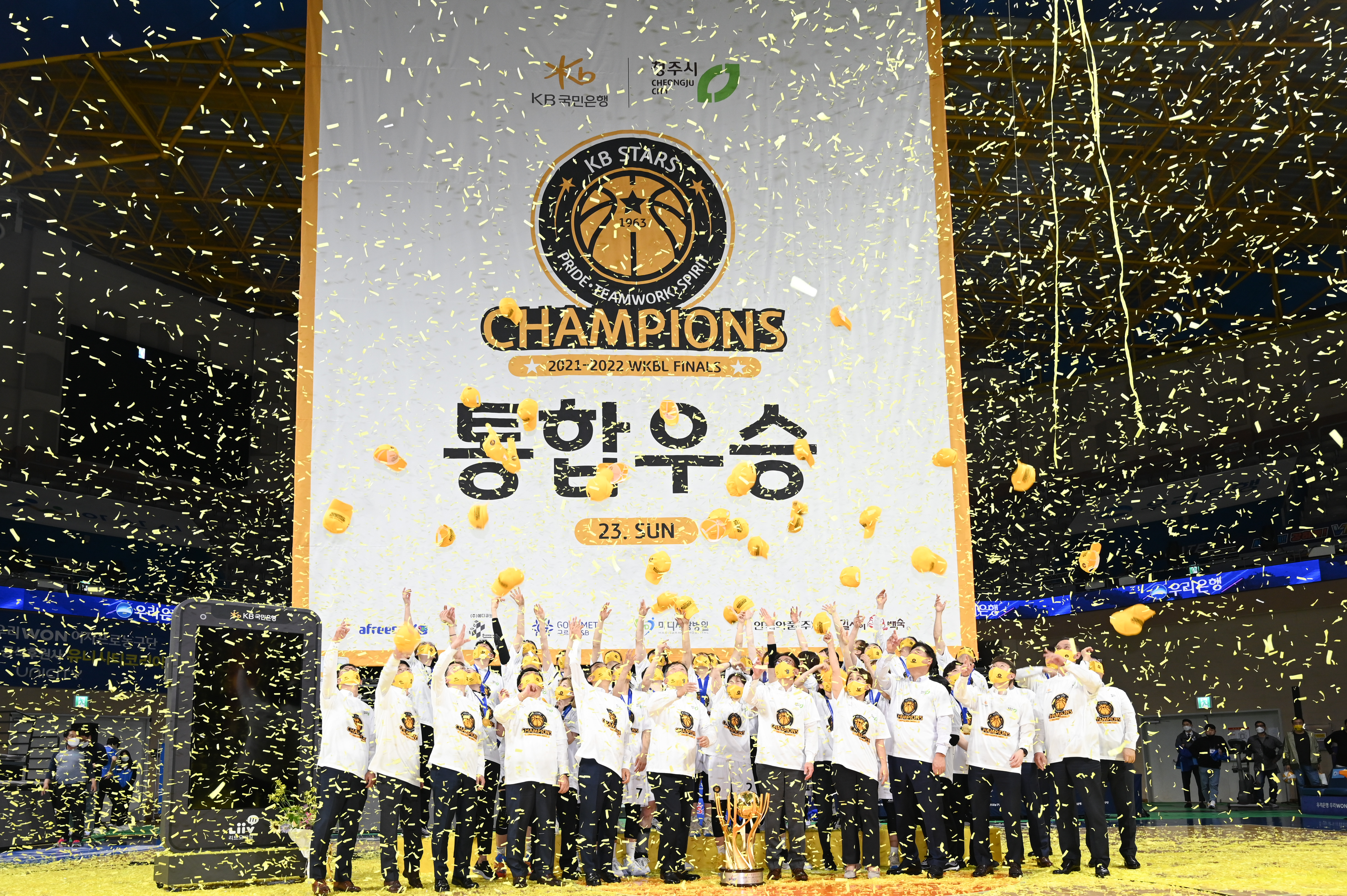 우리은행은 춘천에서 아산으로 연고지를 옮긴 후에도 통합 우승을 차지한 경험이 있다. 하지만 아산이순신체육관에서 트로피를 들어 올린 적은 없다. 우리은행의 아산 홈에서 최초로 우승 트로피를 차지한 주인공은 KB가 됐다.