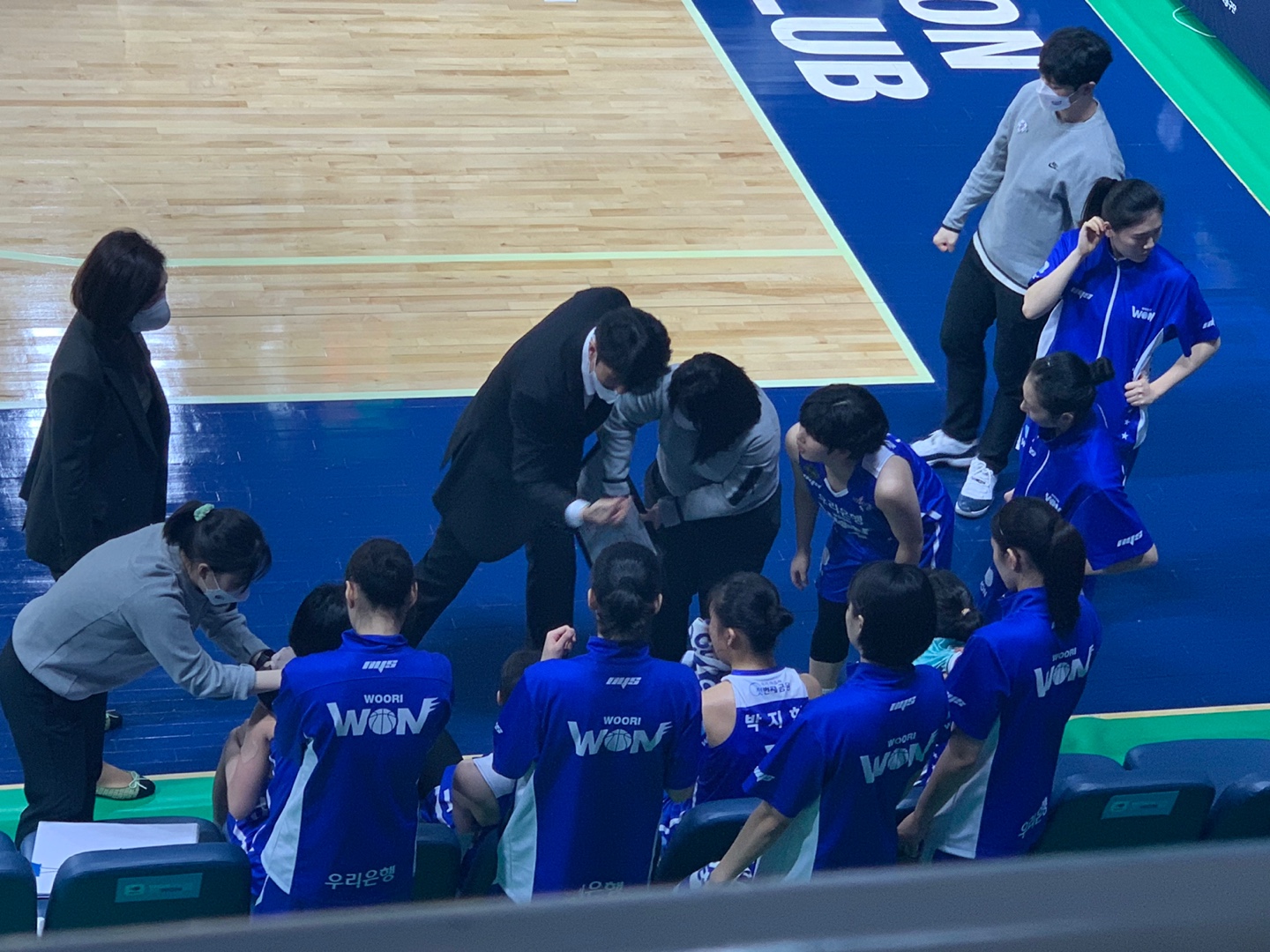 공교롭게도 청주체육관의 기자석은 원정 벤치 바로 위다. 아산이순신체육관의 기자석은 홈 벤치 위다. 그래서 시리즈 내내 우리은행 벤치의 표정이 너무 잘 보였다.