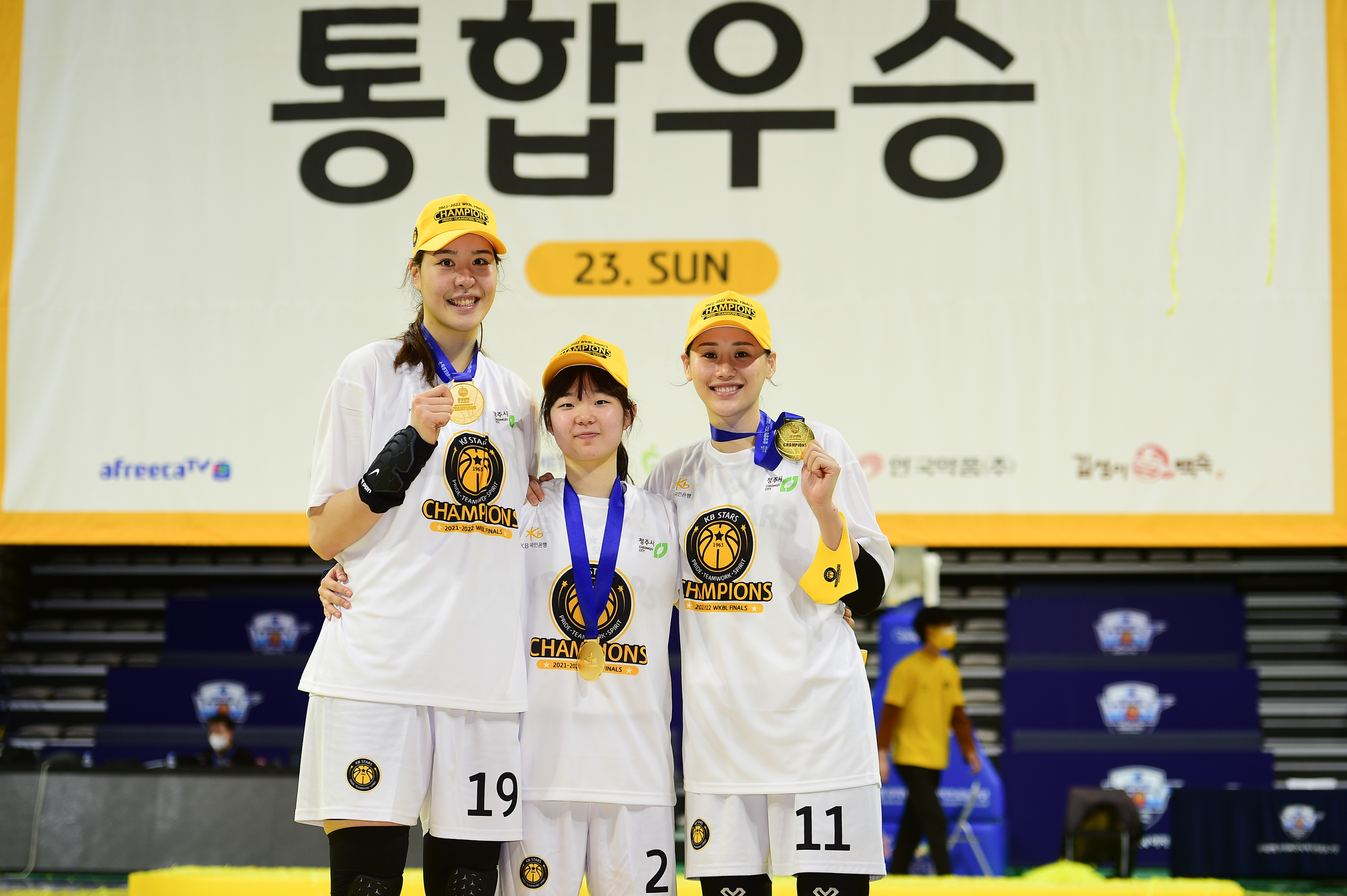 - 강이슬은 마지막 3차전에서 3점슛 5개 포함 32점을 득점했다. 김완수 감독은 “3차전 강이슬은 정말 WNBA에 갈 만하다”고 했다. 그러면 앞선 경기들은 WNBA 가기에 부족했냐고 묻자, 다소 당황하더니 “시즌 내내 잘해줬는데, 특히 3차전이 그렇다는 말”이라며 웃었다.