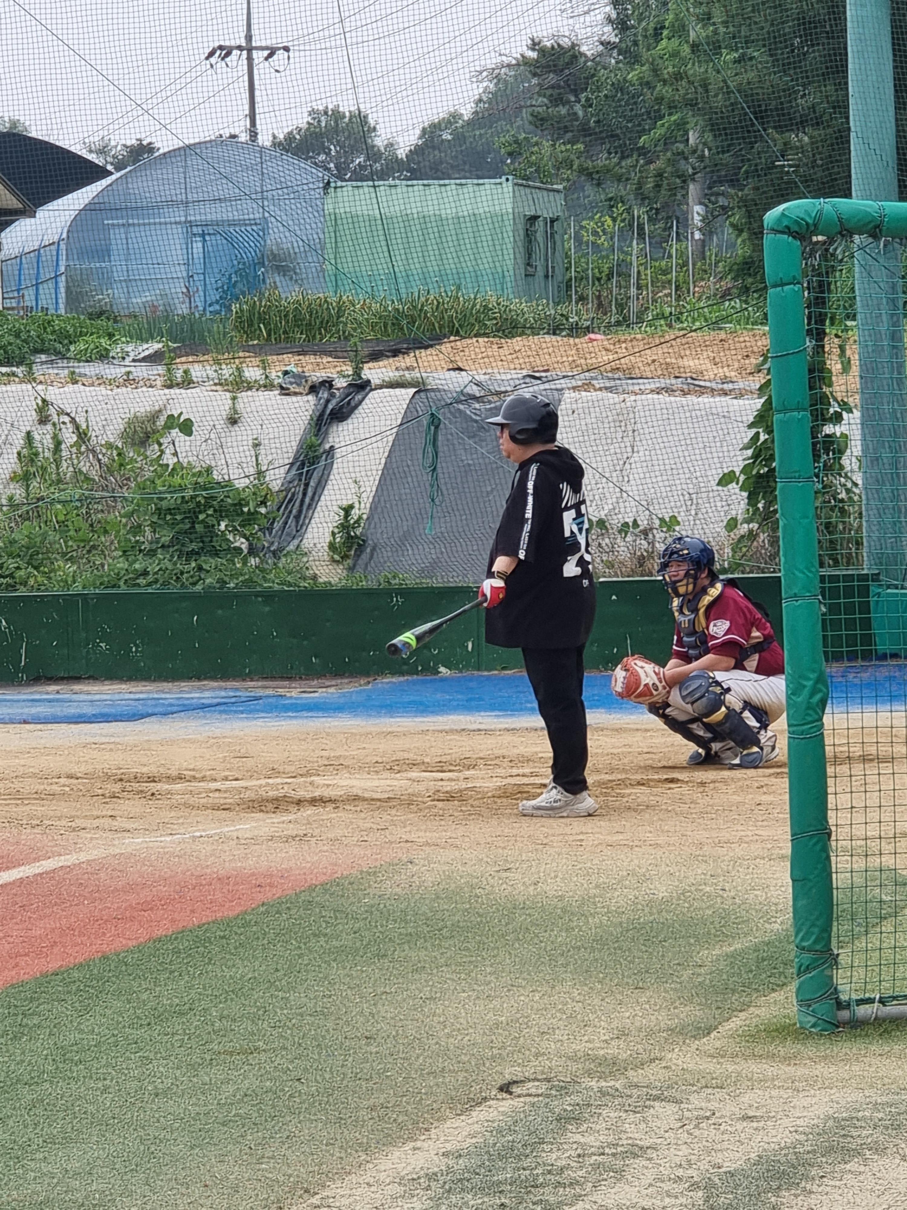? -_-;;; 대타로 나갔다. 9년만에 하는 야구다. ... 겁나 어색해. 하지만 마치 어제까지도 스윙 5천개 했다는 자세와 오만함으로 어슬렁 어슬렁 타석으로 들어섰다. 길이가 짧아 그렇지 몸매는 슬러거다.