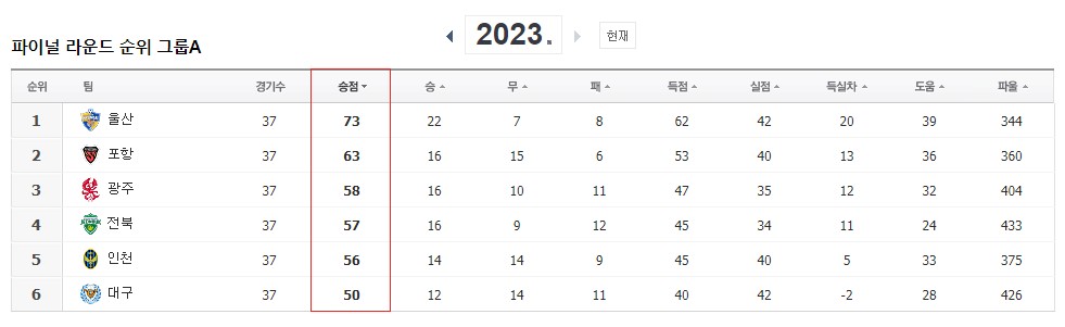 다시 강조하지만 3위는 ACLE 플레이오프 진출, 4위는 ACL2 진출, 5위는 아시아 대회 출전이 좌절되며, 9위와 크게 다를 거 없이 시즌 마감입니다.