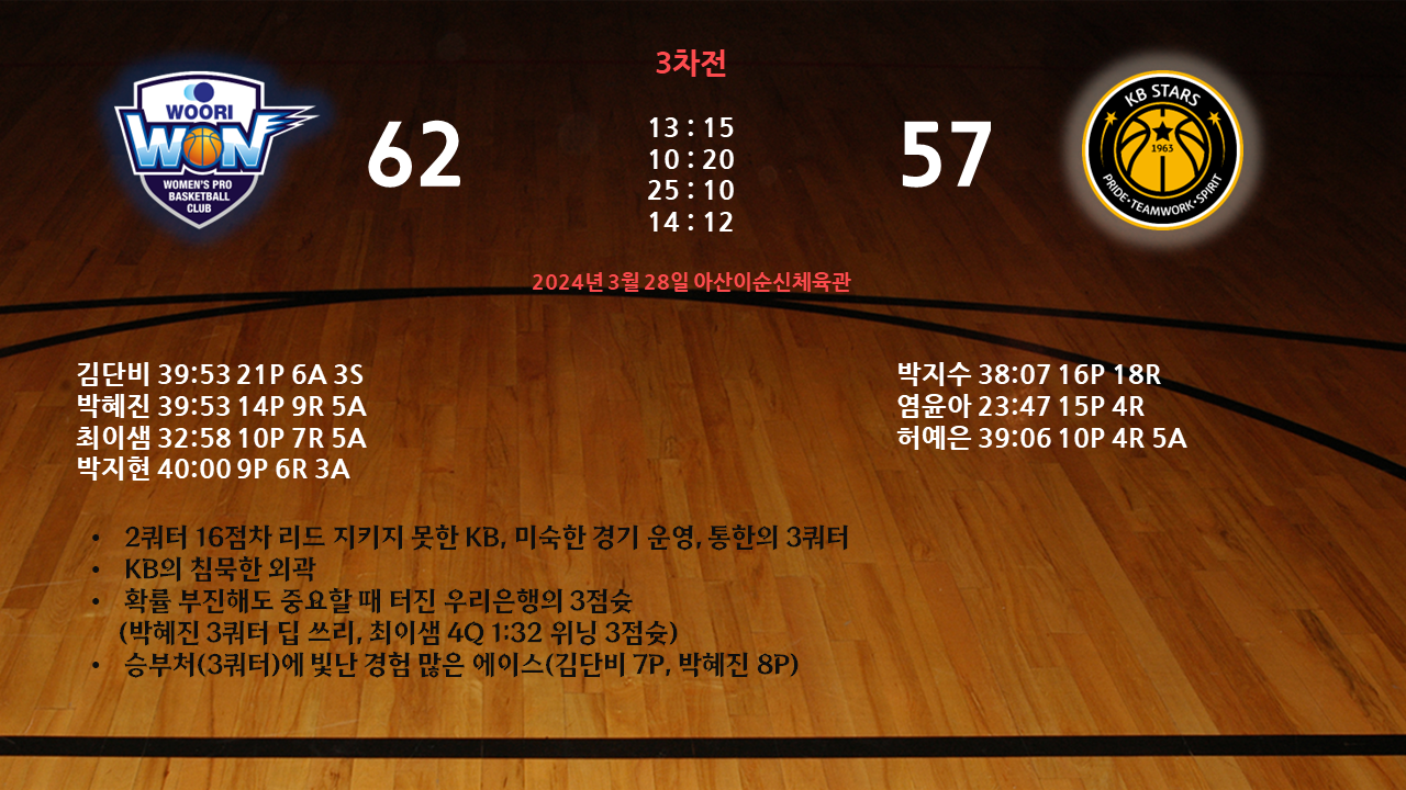 3차전 62-57 우리은행 승