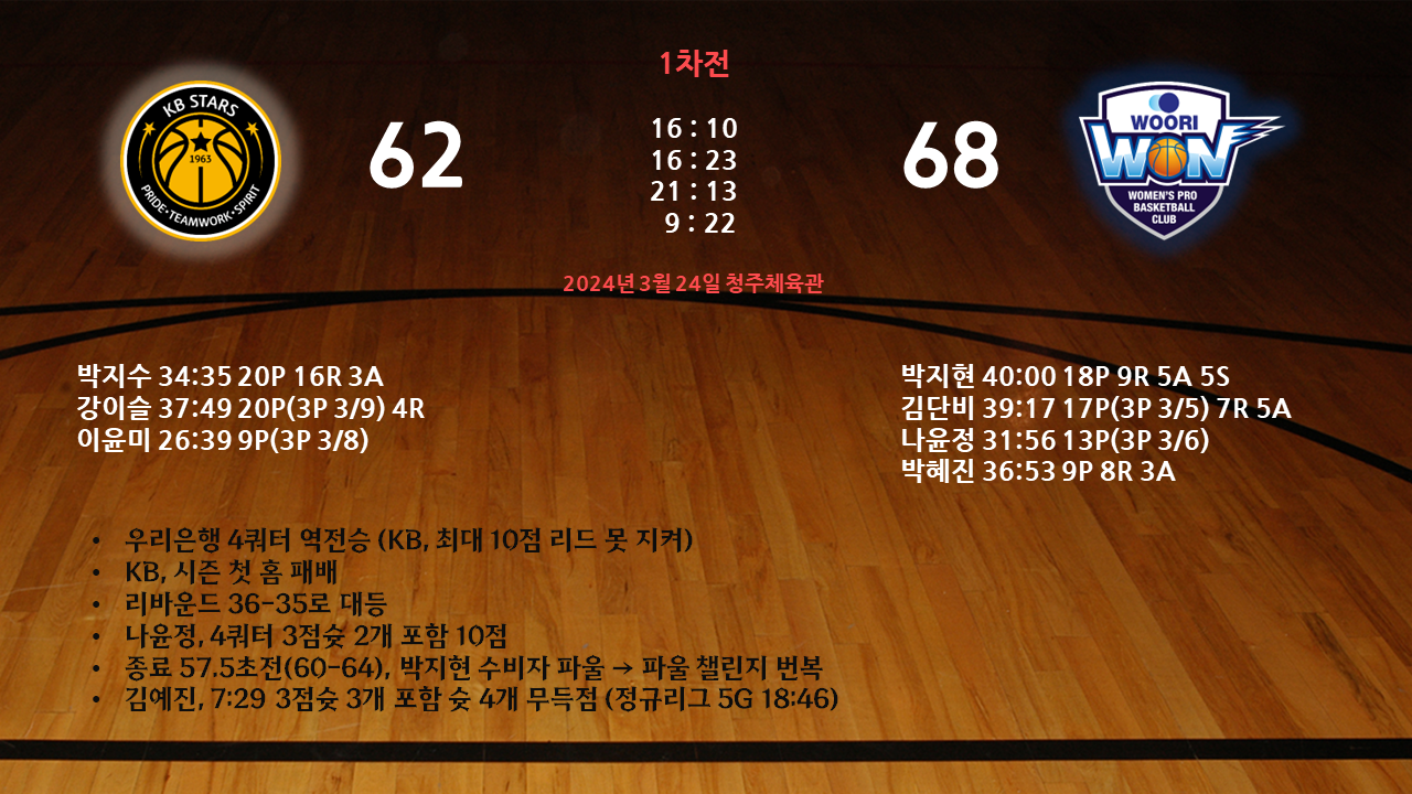1차전 68-62 우리은행 승