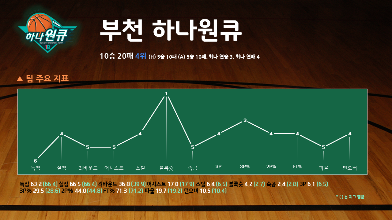하나원큐의 지난 시즌 평균 실점은 66.4점. 2016-17시즌 이후 7년 만에 평균 실점이 70점 이하로 내려왔다. 신세계를 이어 창단한 2012-13년 첫 해(64.8점) 이후, 팀 역대 최소 실점 2위의 기록이다. 그리고 리그 평균과 가정 적은 차이(0.1점)을 보인 시즌이었다.