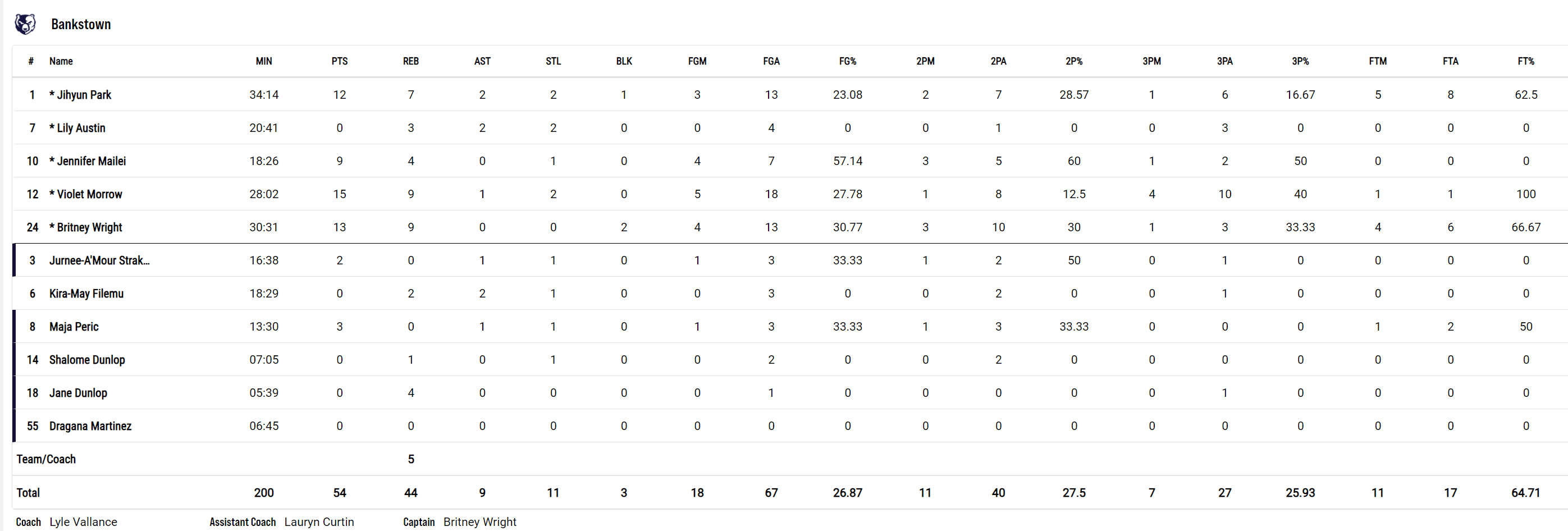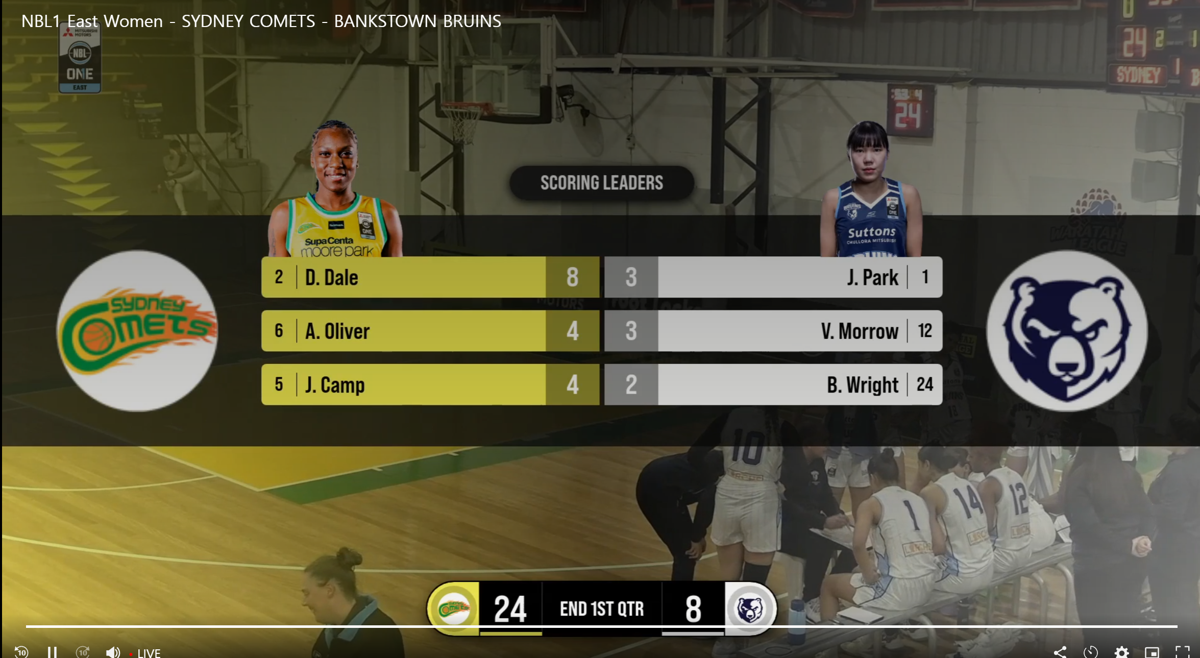 • 다만, 박지현이 속한 뱅크스타운 브루인스는.... 음... 농구를 참 못한다... 경기를 보던 손대범이 말했다. "박지현 농구 인생에 가장 약한 팀을 경험하는 것 같다"고... 공감한다. 9경기에서 2승 7패를 기록하며  NBL1 동부 16팀 중 14위다. 오늘 시드니 코멧츠한테 54-77로 박살이 났는데 1쿼터에 이미 끝난 경기였다. 일찌감치 아작난 경기인데 상대가 마음 먹었으면 점수차는 더 벌어졌을 것 같다.  시드니도 그닥 농구를 잘한다는 느낌은 아니었는데... 그럼 그렇지.. 4승 6패로 10위다.