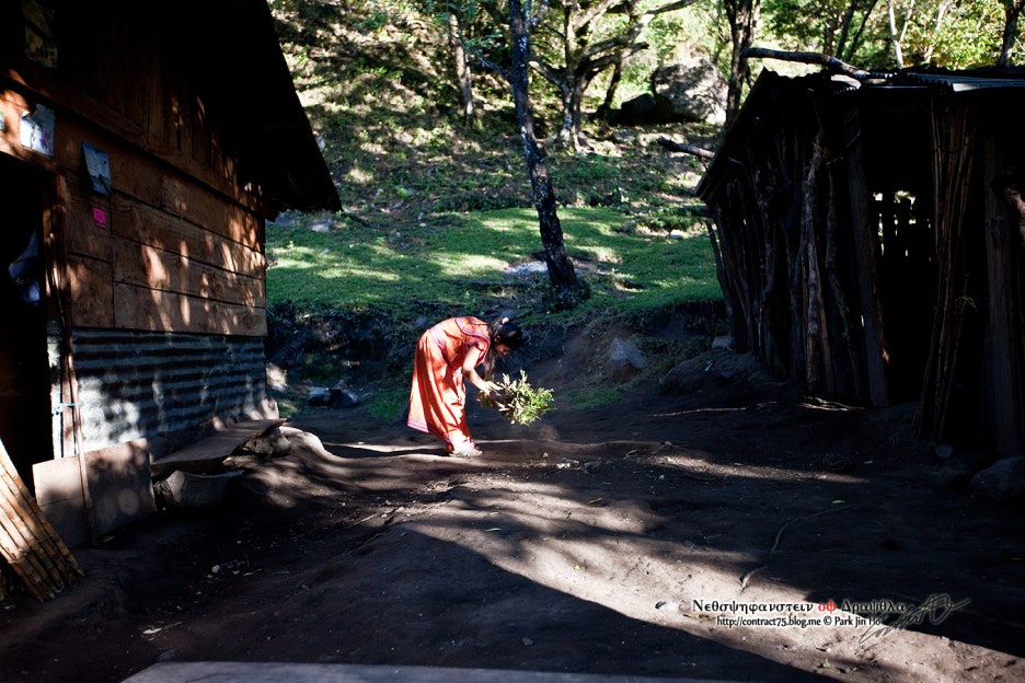 그림같은 풍경 속에 깊이 자리 잡은 은닉의 공간은 그들에게 깊은 여유와 안락함을 선물했지만 관찰자이기에 발견할 수 있는 불편은 존재하고 있었다. 인터넷과 핸드폰 없이는 하루도 버티기 힘든 현대 사회에서 전기와 전파가 제한된 공간에 사는 그들은 그들의 주식인 바나나와 플라타노가 충분치 않아 하루 한 끼 밖에 취식을 하지 못하고 있었지만, 그들 스스로는 큰 불편을 느끼는 것 같지 않았다.
