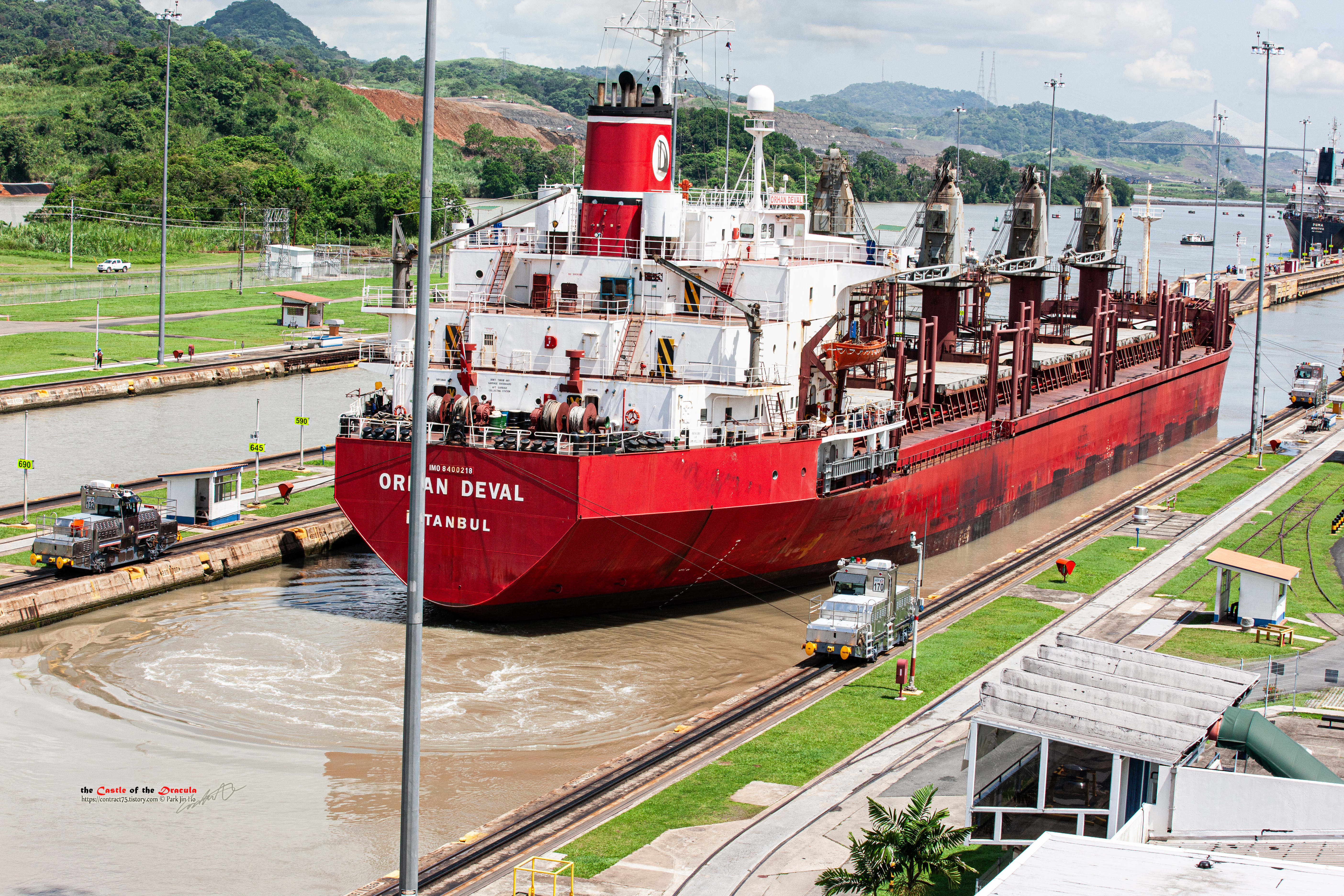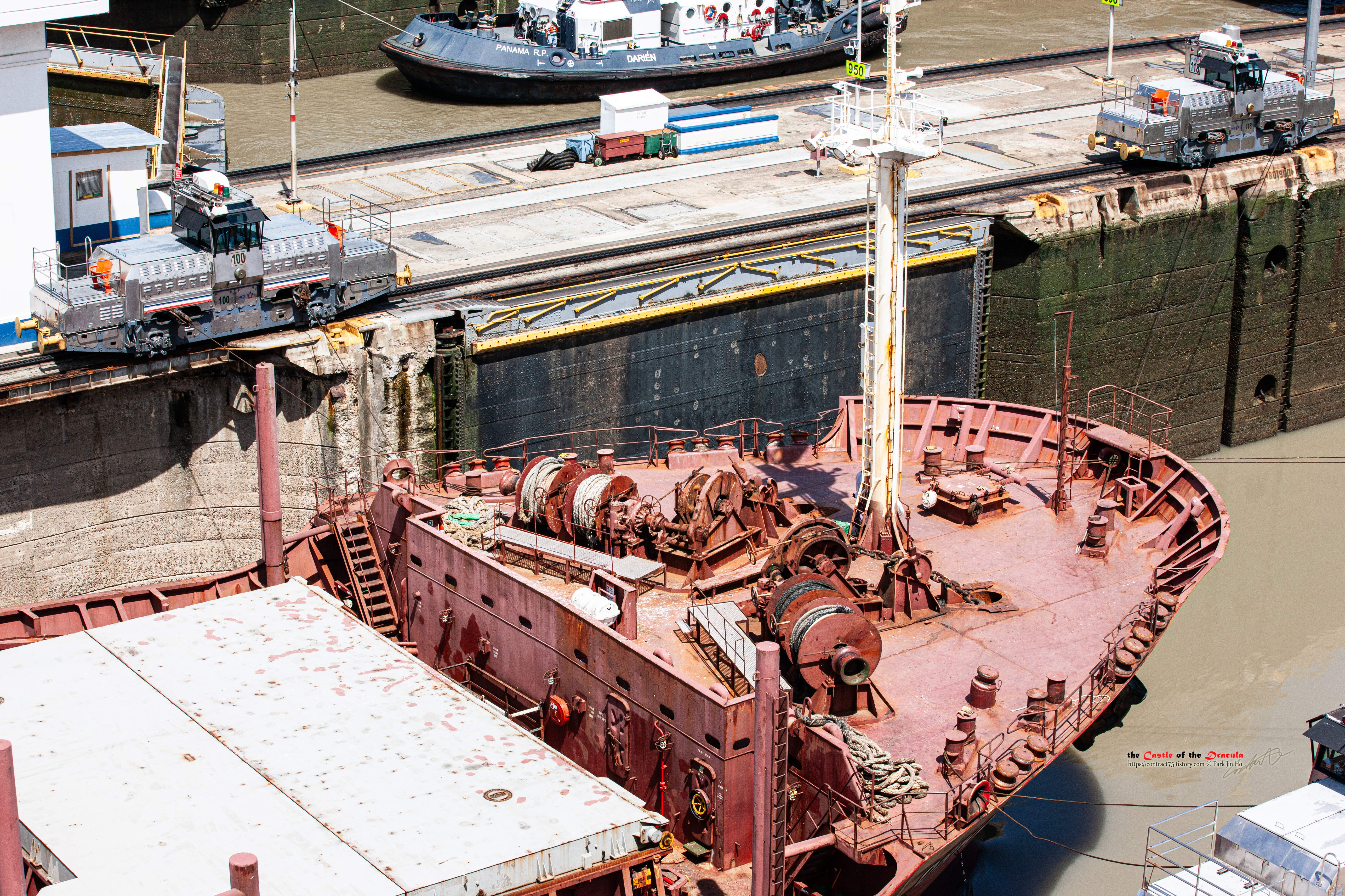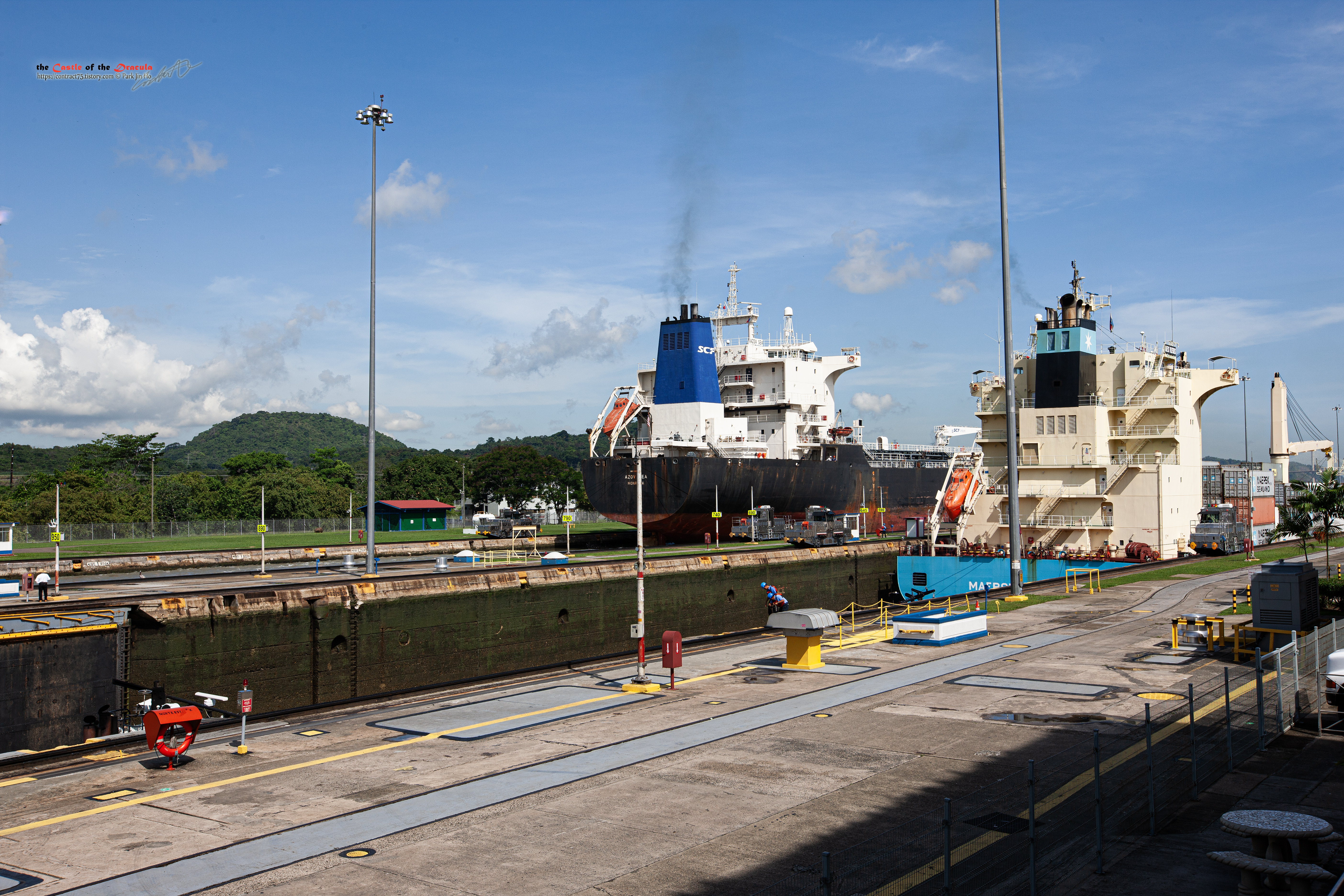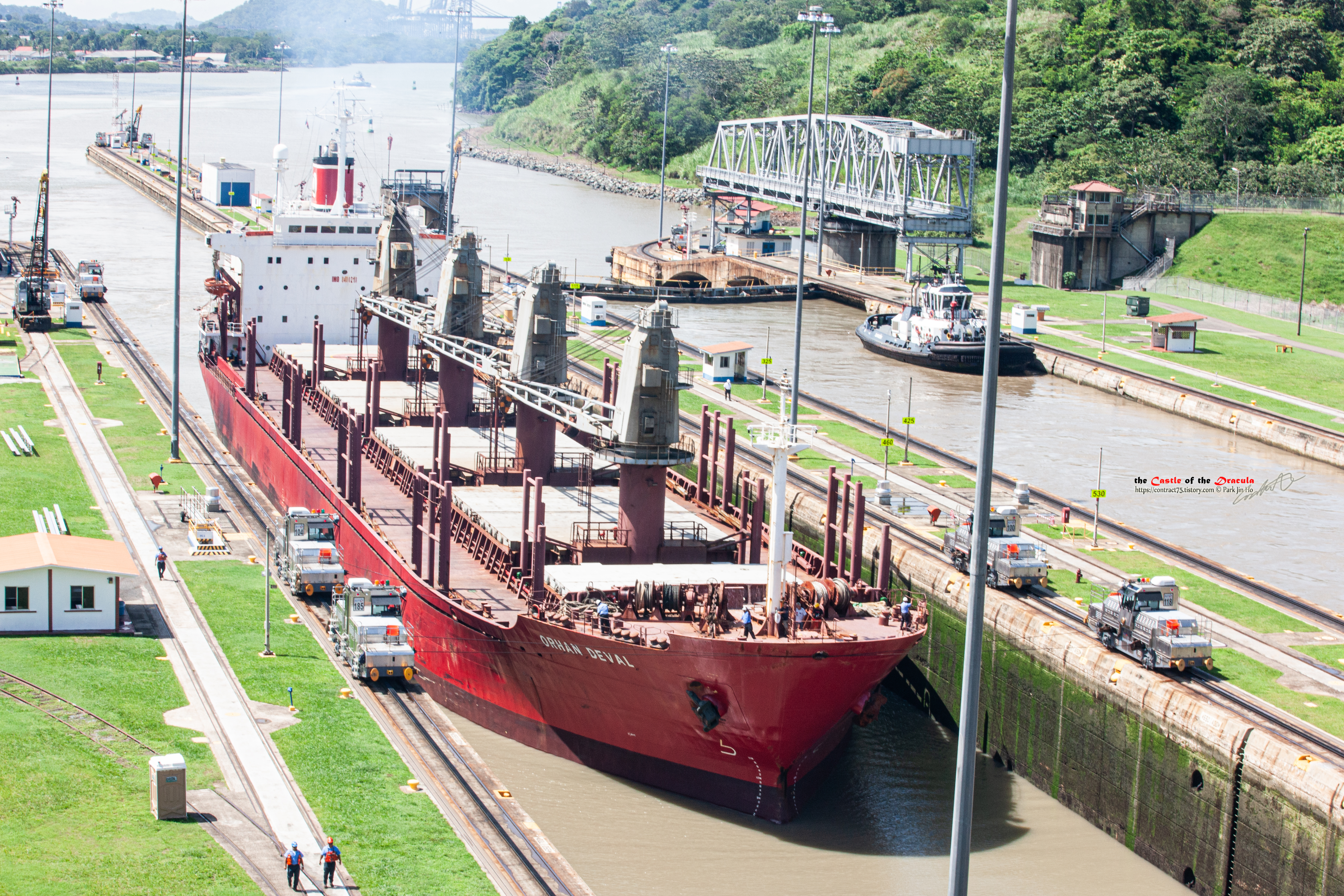 그 너머의 수위와도 일치를 시킨 후 갑문이 열리고, 태평양 쪽에서 진입한 이 배는 파나마 운하의 첫번째 관문인 미라플로레스 갑문을 빠져 나가게 된다. 이 갑문을 빠져나간 선박은 이후, 페드로미겔 갑문을 지나게 되고 가툰 호수에 진입한다. 게일라드 수로라고도 불리는 쿨레브라 수로를 지난 후, 마지막으로 가툰 갑문이 나오고 이를 통과하면 카리브해에 이른다. 남미 대륙을 삥 둘러서 지나야 하는 비용과 시간을 덜 수 있도록 하는 이 파나마운하의 통과 거리는 총 80km. 시간은 보통 8시간이 소요된다고 한다.