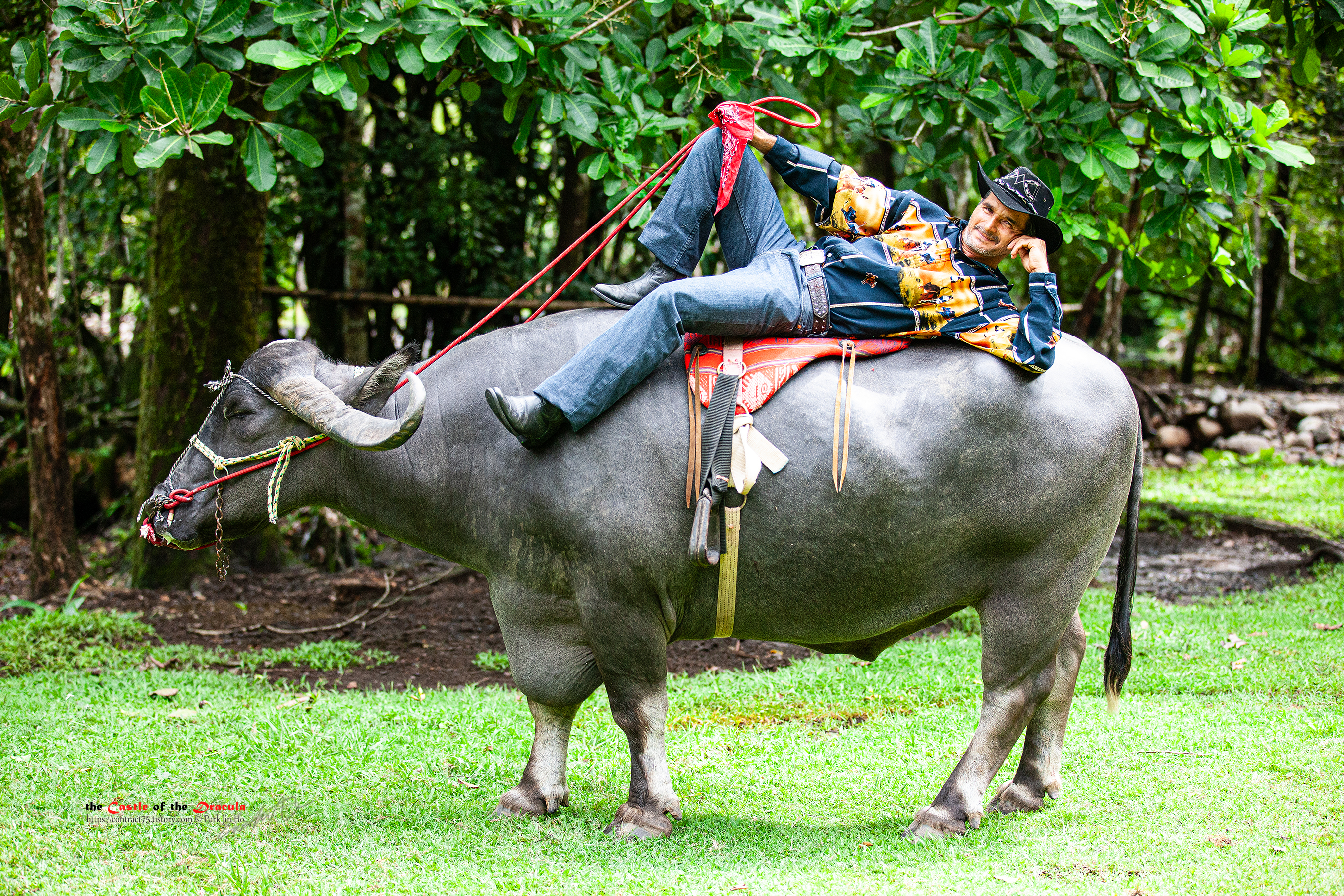 물소 위에서 한껏 멋을 부리신 이 아저씨가 여기 주인 아저씨다. 수많은 동물들의 주인이며, 이 작은 동물 농장을 가꾼 파나마 보케떼의 자연인이다.