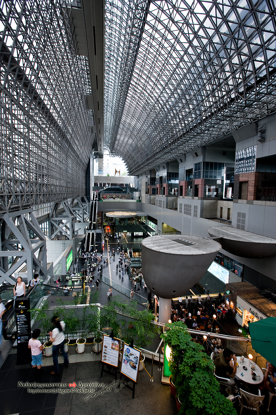 중앙 홀의 천장 위로는 교토 타워가 보인다. 비가 오지 않아 지붕이 선명했으면 조금 더 깔끔한 시야가 됐으려나... 하지만 이날 이후 다시 여기를 방문하지는 않았으니...