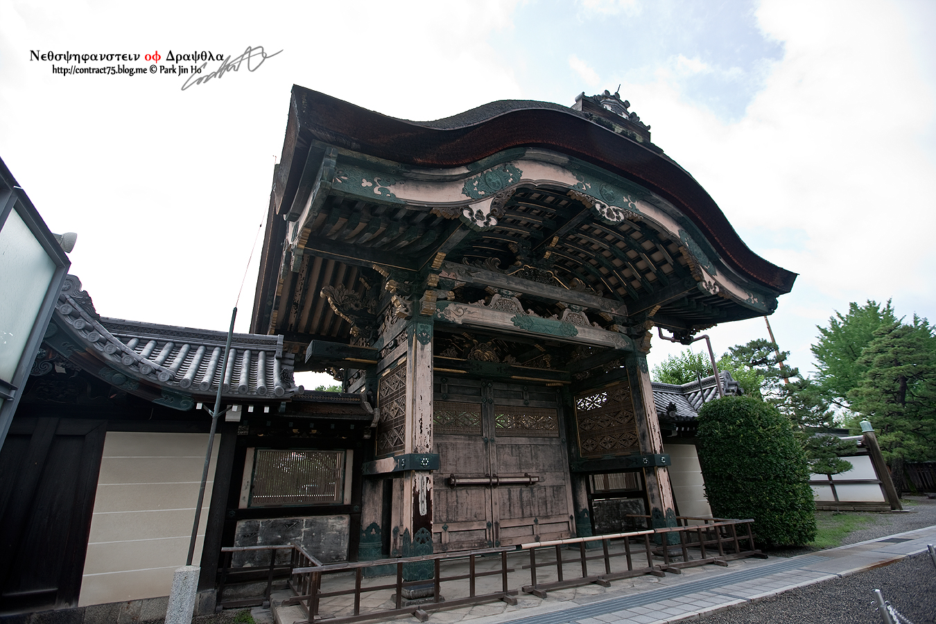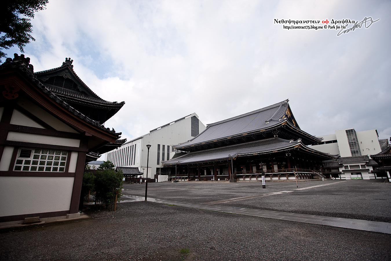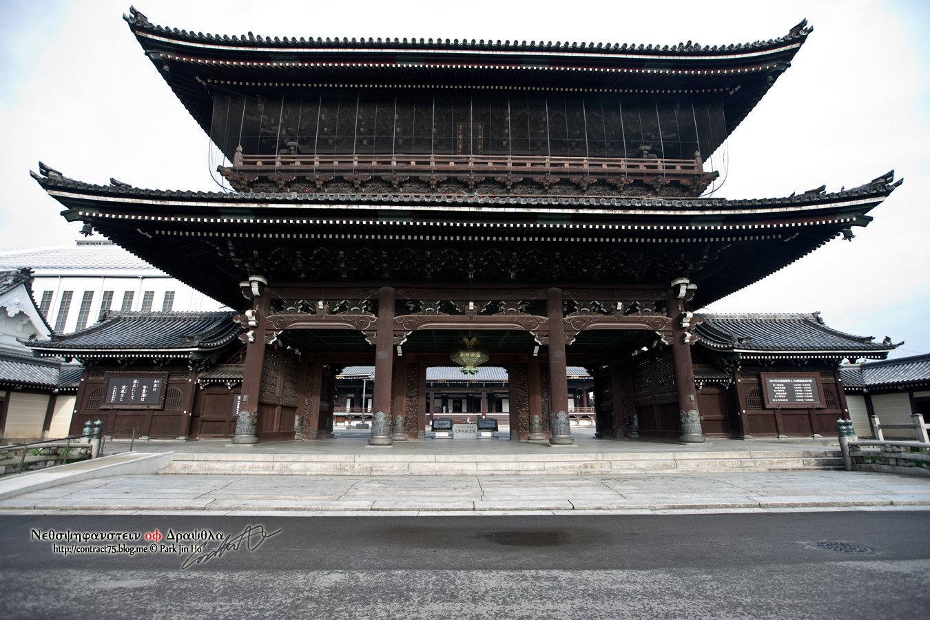 교토역 북쪽 출구로 나가서 요도바시 건물을 지나 그냥 생각없이 조금만 걸으면 거대한 사찰이 나온다. 히가시혼간지(東本願寺) 라는 절의 정문인 다이시도몬(大師堂門)이다. 저 위에는 공사중인가 했는데, 공사중이 아니라 새들이 집 짓지 못하게 하기 위에 막아놓은 거 같았다. 이 문이 치온인, 난젠지의 산문과 더물어 교토의 3대문으로 꼽힌다고 한다.