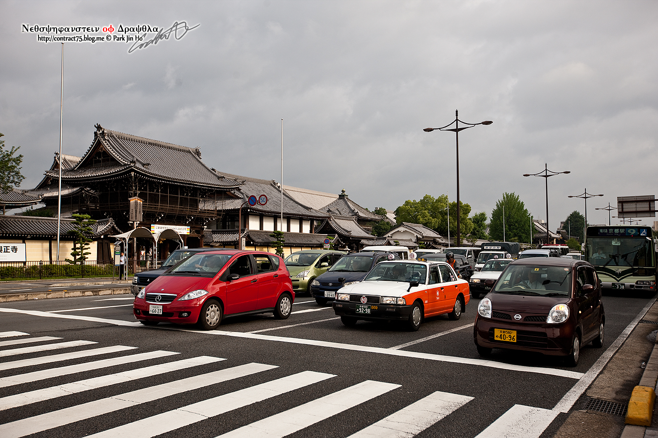 그렇게 히가시혼간지에서 나와 길을 타고 쭈욱 걸으면 10여분 정도를 걸어서 니시혼간지(西本願寺)에 이를 수 있다. 일본 불교 정토진종의 총본산이라고 하네요. 원래는 히가시혼간지와 니시혼간지가 하나로 붙어서 그냥 혼간지 였는데, 사원 세력을 견제하기 위해 1602년 도쿠가와 이에야스(德川家康)가 절을 분리시켰다고 합니다.